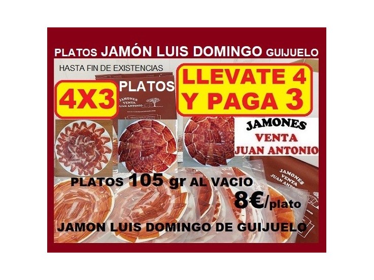 AHORA COMPRA 4 platos y PAGA 3. JAMON DE LUIS DOMINGO DE GUIJUELO.